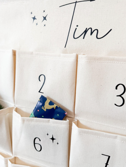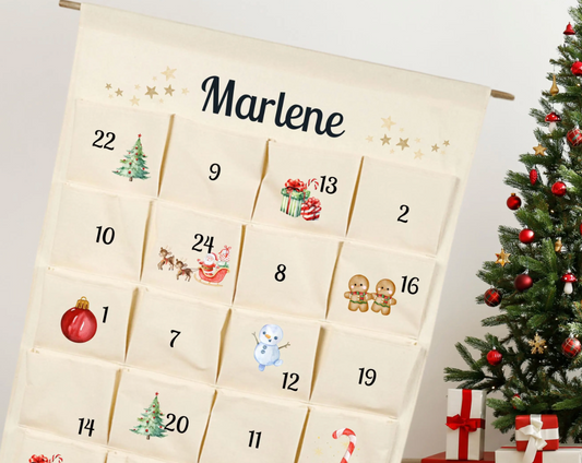 Personalisierter Stoff-Adventskalender mit Namen | Zahlenfarbe wählbar