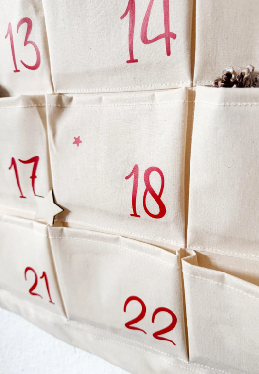 Personalisierter XXL Adventskalender aus Stoff – Beige, zum Selbstbefüllen