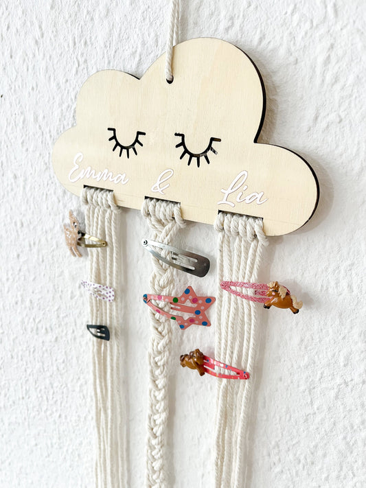 Haarspangenaufbewahrung aus Holz "Wolke" personalisiert