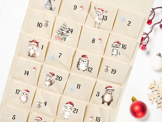 Personalisierter XXL Adventskalender aus Stoff – Beige, zum Selbstbefüllen