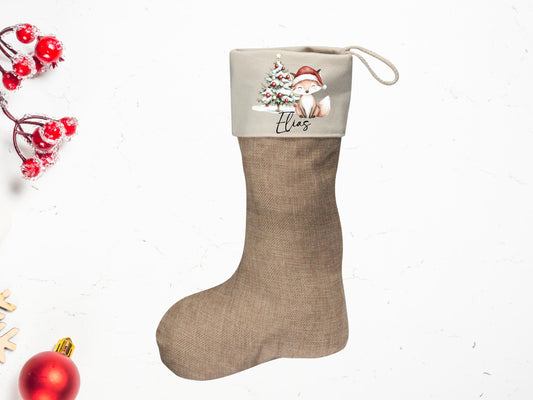 Nikolausstrumpf 40 cm personalisiert mit Name | große Motivauswahl (Waldtiere) | Weihnachtsstrumpf zum Aufhängen, Jute/Canvas