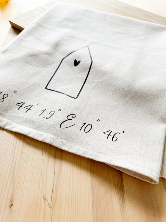 Personalisiertes Geschirrtuch | Breitengrad |Abtrockentuch | Geburtstag | Einzug |Bauherren | Muttertag