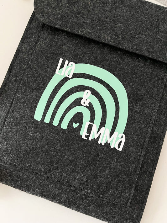 Personalisierte U-Heft-Hülle aus Filz | Umschlag Untersuchungsheft | Regenbogen und Namen | Uhefthülle Impfpass
