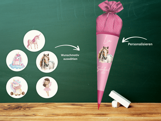 Schultüte aus Stoff personalisiert Rosa Mit Namen & Wunschmotiv | Für Mädchen & Jungen