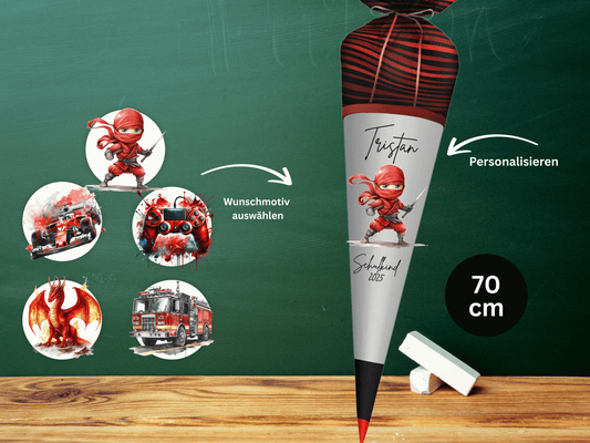 Schultüte aus Stoff personalisiert Rot Mit Namen & Wunschmotiv | Für Mädchen & Jungen