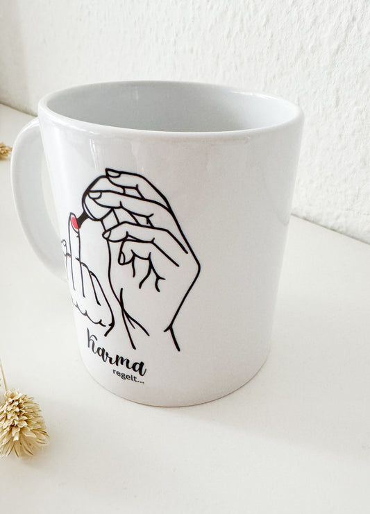 Tasse Karma regelt“ | Kaffeetasse mit Spruch | Karma Tasse | Geschenk Kollegen | Geschenk Freundin