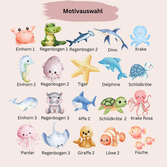 Personalisierter Kinderbecher mit Namen 20 Meerestiere Motiv wählbar Becher für Kinder Geschenk zur Einschulung, Kita, Geburtstag