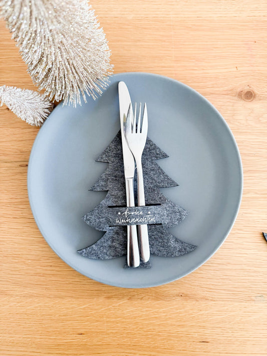 Besteckhalter Weihnachten | Bestecktasche Weihnachtsbaum | Bestecktasche Tannenbaum Filz | Besteckhalter personalisiert | Besteckhalter Name