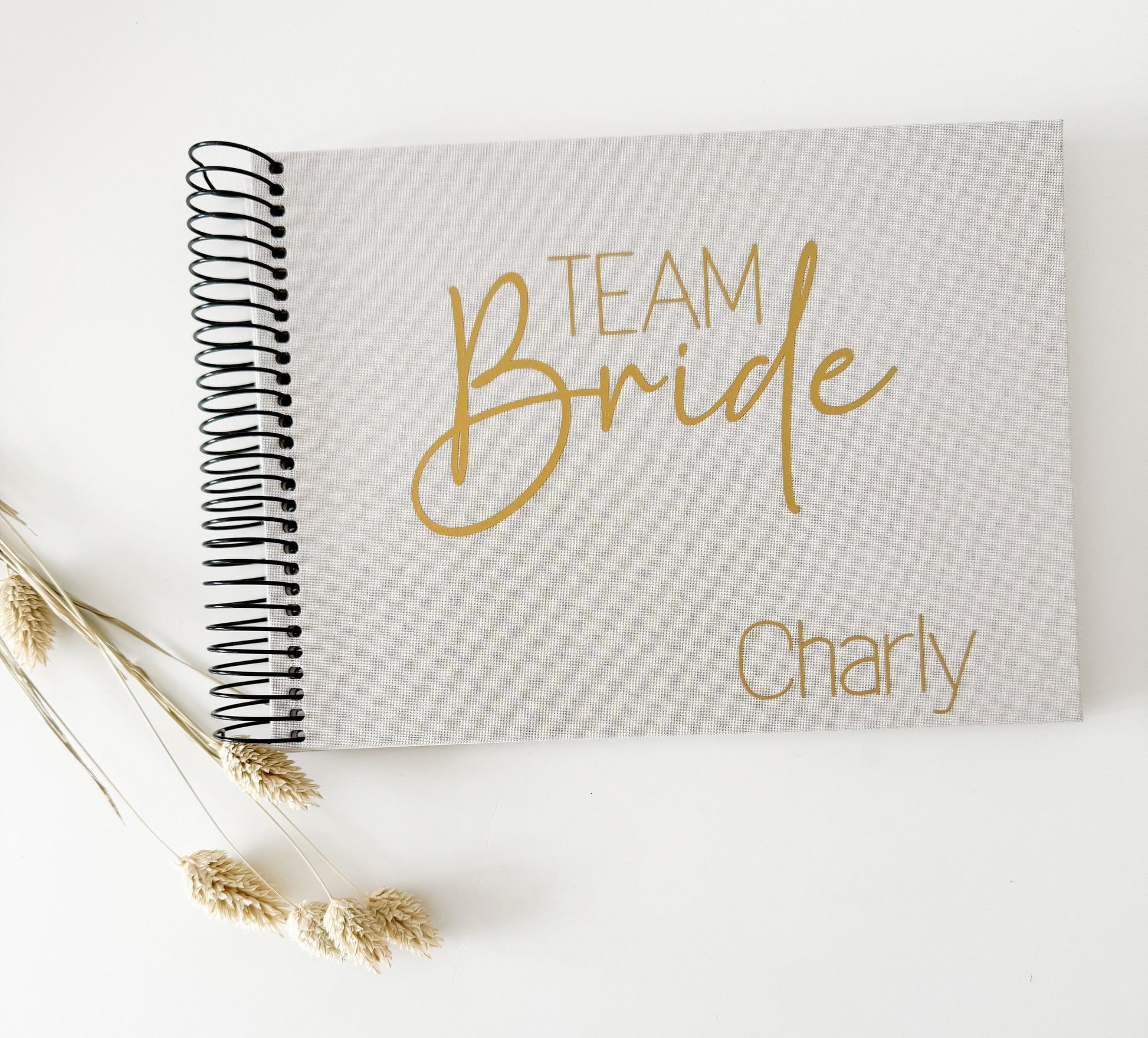 Erinnerungsalbum Junggesellenabschied | Brautparty Fotoalbum | personalisiertes Album aus Leinen | Team Bride | JGA