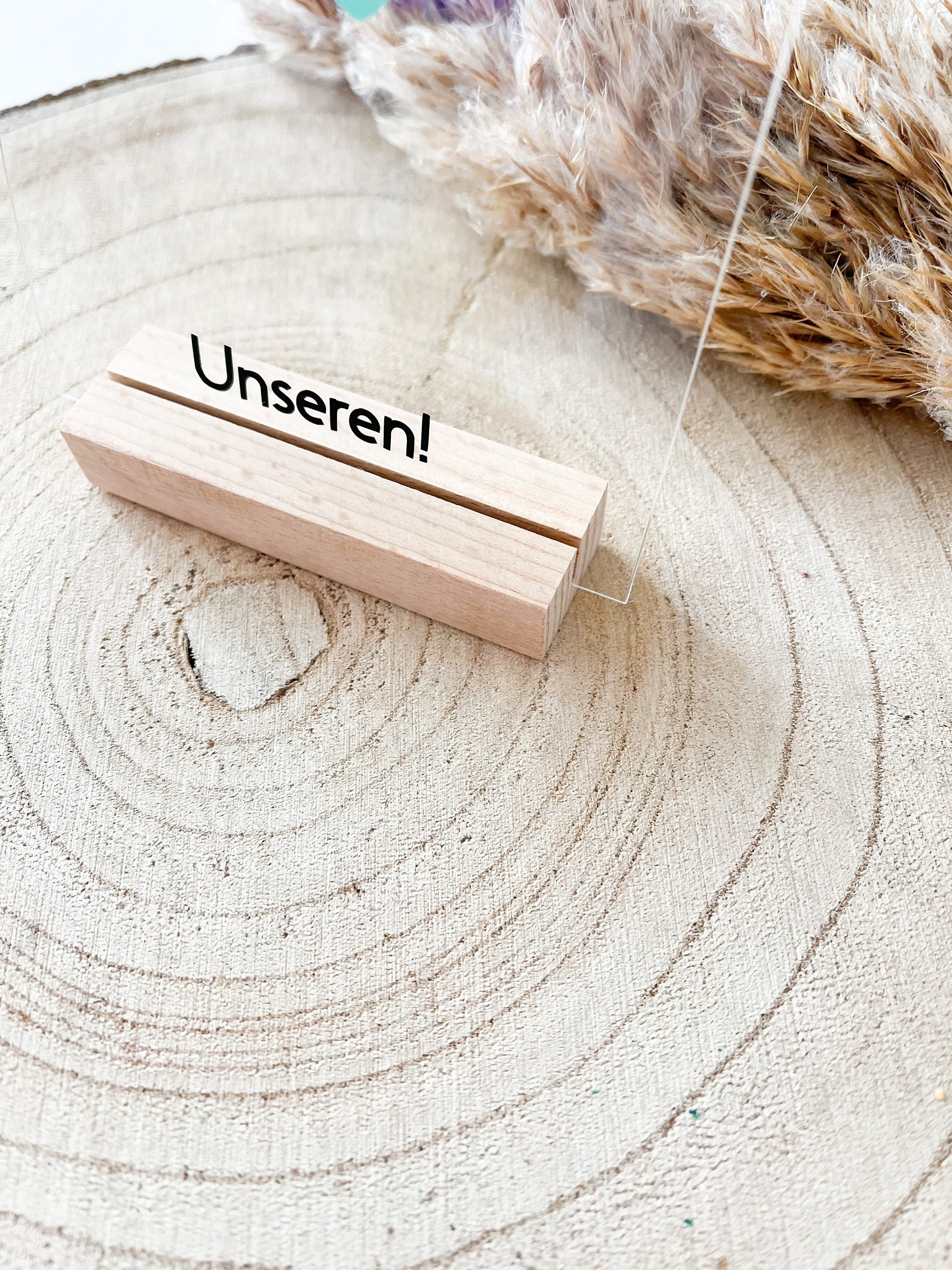 Der Holzhalter lässt sich auf Wunsch personalisieren. Somit wird aus dem Geschenk dein persönliches Unikat.