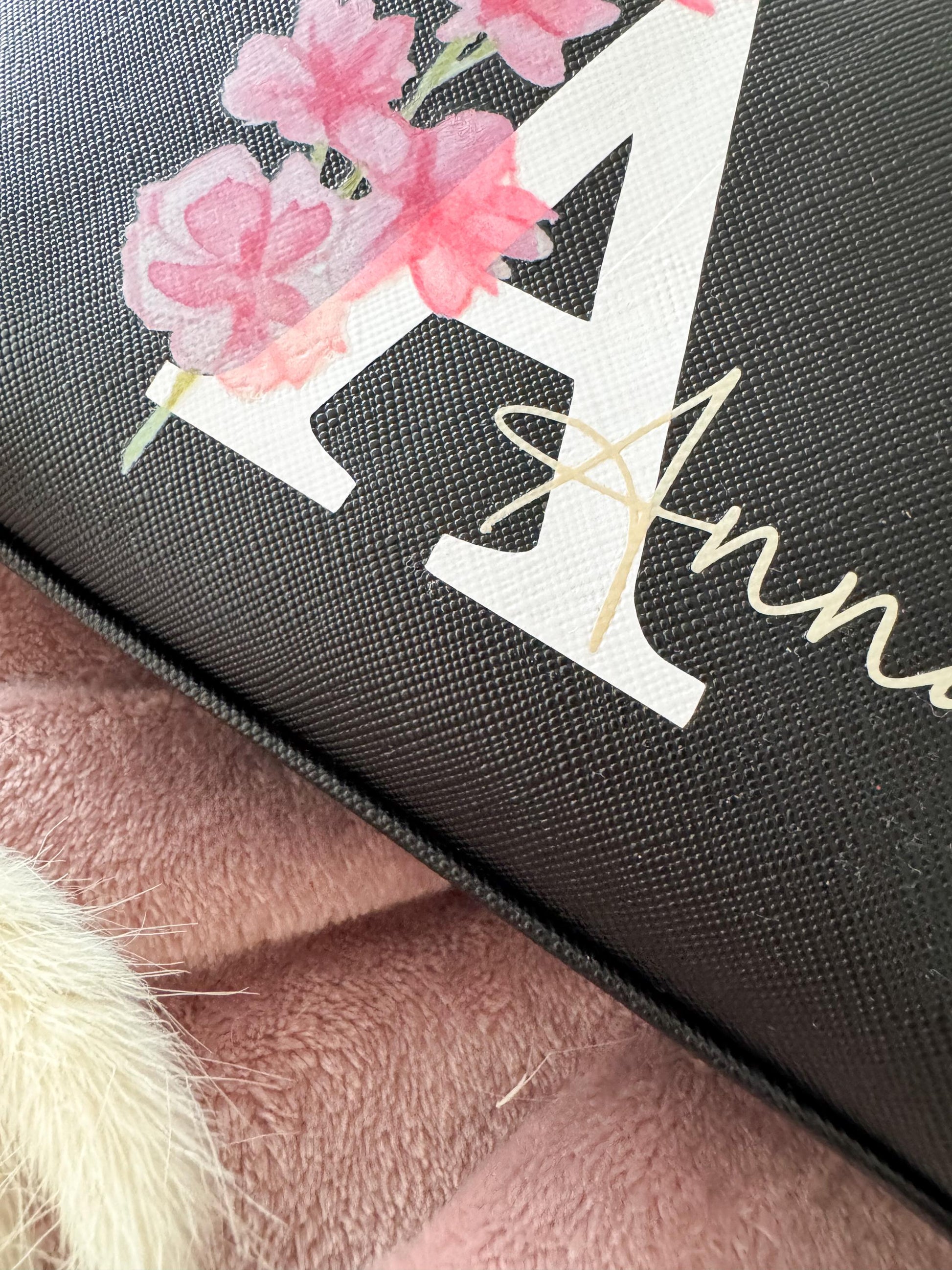 Verleihe deiner Kosmetiktasche eine persönliche Note! Wir bedrucken sie mit deinem Wunschnamen und einer Initiale in liebevoller Handarbeit. Dadurch wird jede Tasche zu einem einzigartigen Einzelstück, das von Herzen kommt.