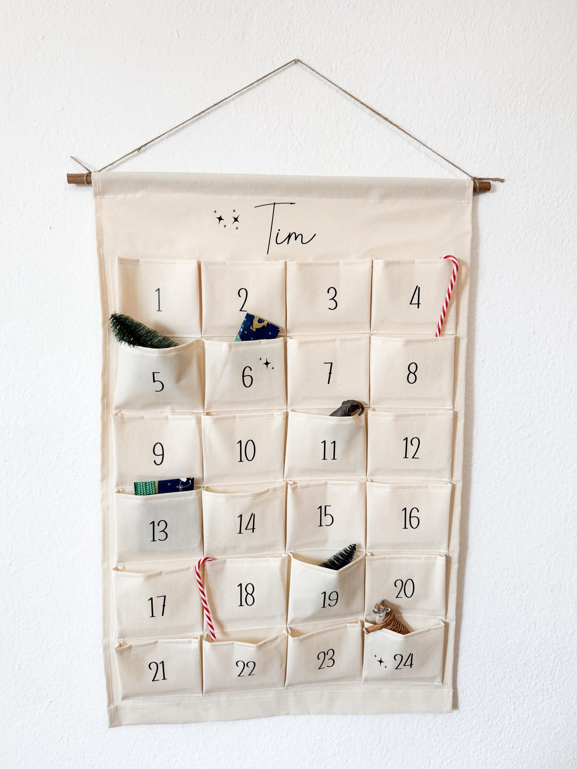 Personalisierter XXL Adventskalender für Kinder zum selber befüllen, 24 Taschen, Kalender aus Stoff | Nachhaltig und Wiederverwendbar