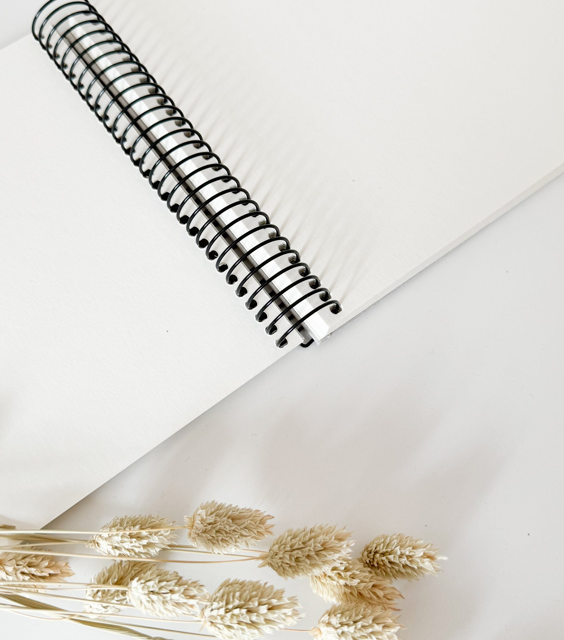 Mit 40 leeren Seiten bietet das hochwertige Spiralbuch aus Leineneinband reichlich Platz für Fotos, Texte und persönliche Erinnerungen.