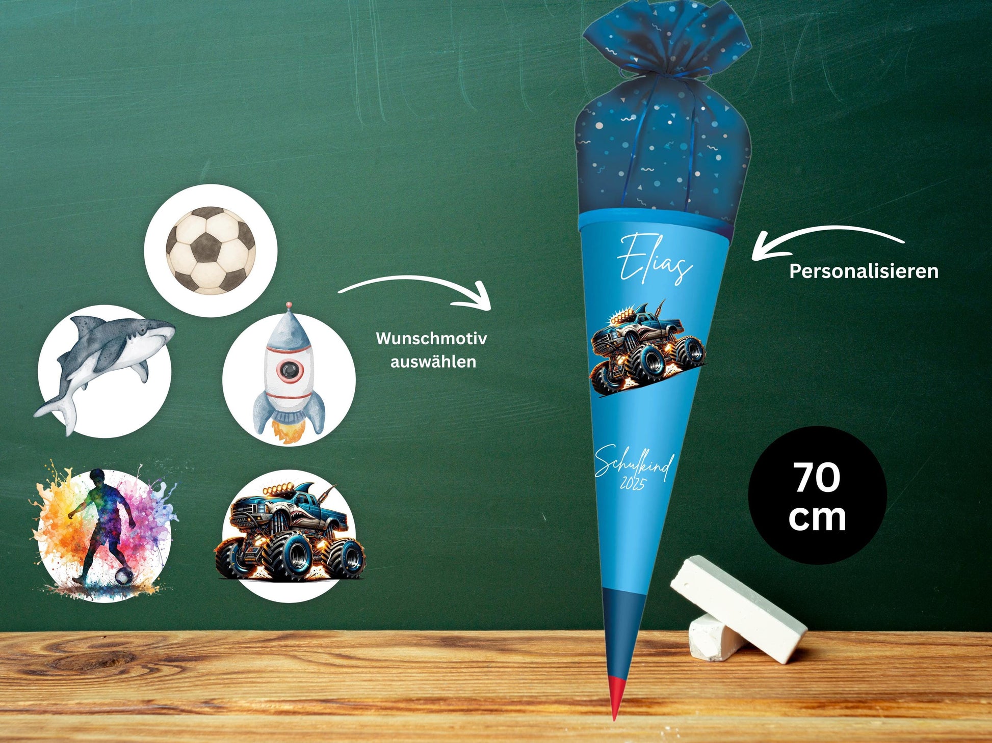 Schultüte aus Stoff |Wunschmotiv |Personalisiert mit Namen |Wunschname| Junge| Blau Schultüte 2026